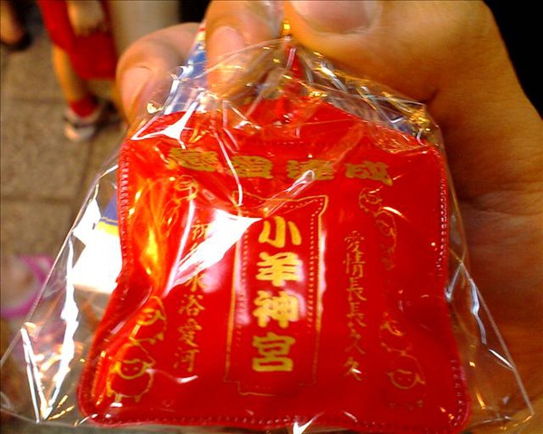做成「戀愛御守」裡面包著兩個糖果...