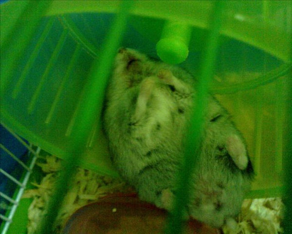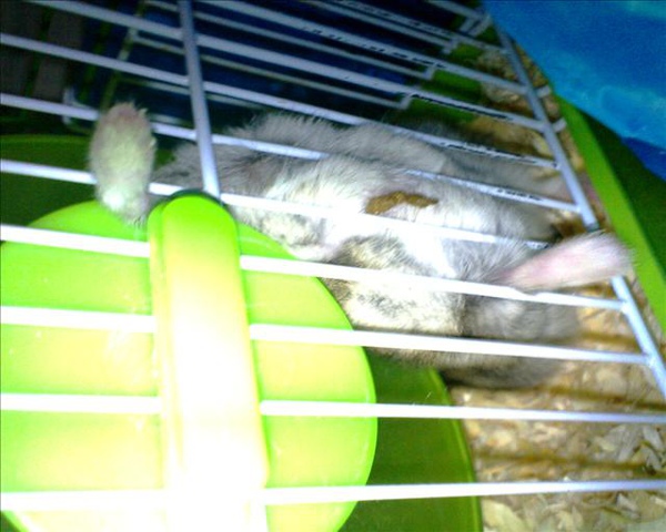 疑!牠不知道那裡想不開竟然把腳卡在滾輪後面的籠子上...