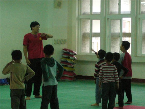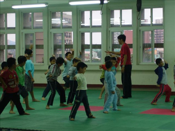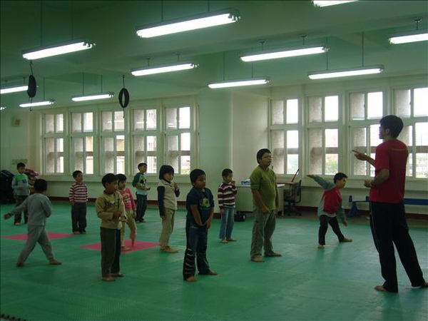 他們的教室是跆拳道教室~裡面有墊子~有踢把~