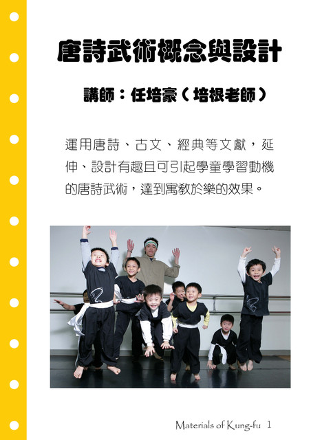 (為了讓更多人知道與懂得運用「唐詩功夫」教學帶來的魅力,培根老師在今年初做了「唐詩武術概念與設計」一文,方便大眾學習)