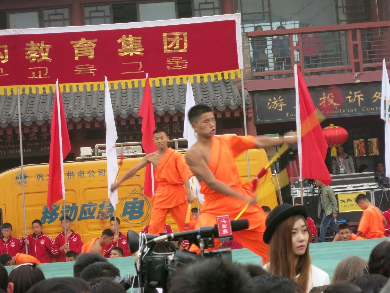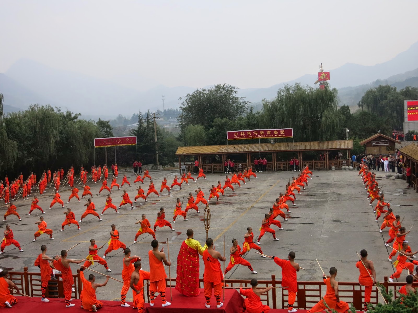 不論你走到哪裡,每個位置都是滿滿的「和尚」與「沙彌」。不過或許很多人會很不屑這點吧?的確,他們都是武術學校的學生為了這次的節目穿上袈裟並且剃掉頭髮過來表演的。