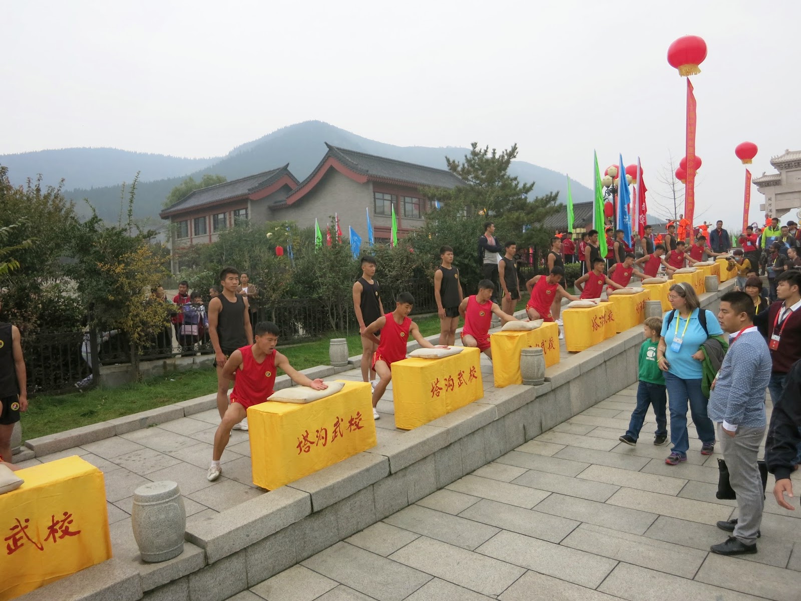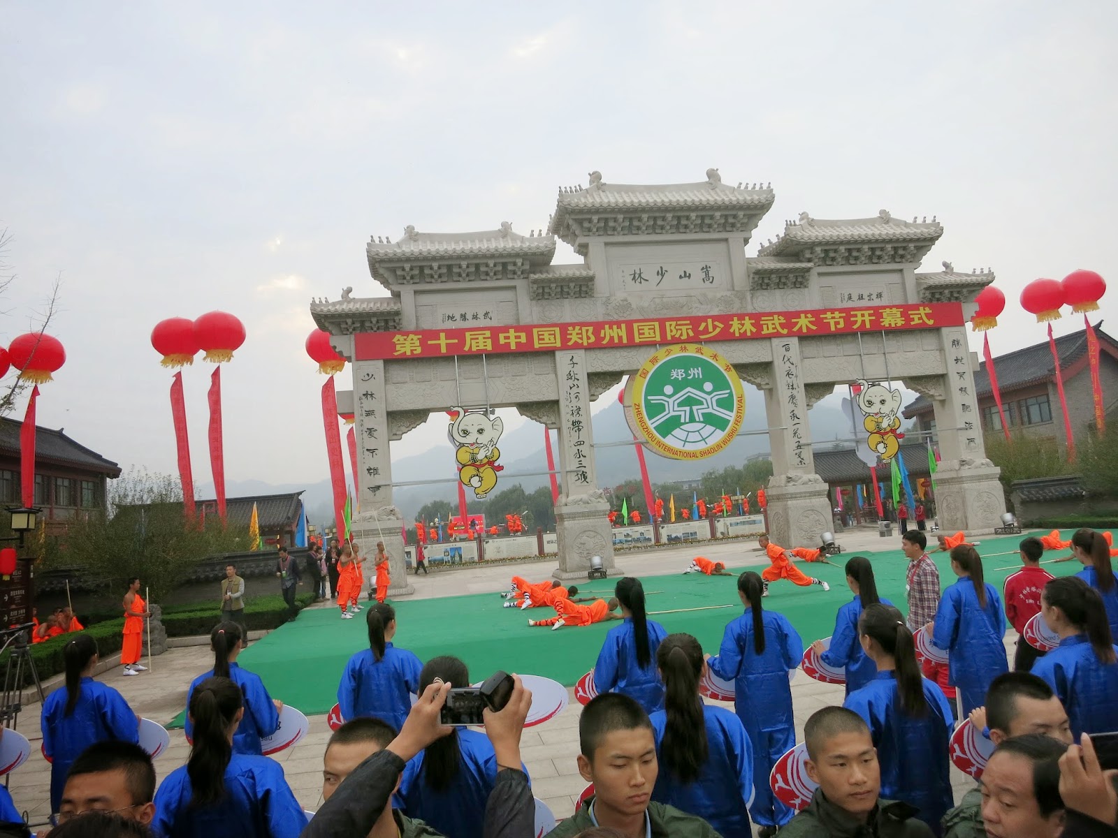 隨著人潮我們來到了這個寫著「嵩山少林」牌樓下,這裡集結了所有這次參與少林武術節來自世界各國的參賽選手與嘉賓。