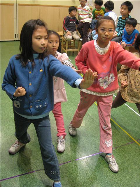 原本的動作在最後是要採取順步「捶」,不過對小朋友而言用手掌不但一來不會造成對方的傷害,同時在他們還沒有充分訓練之前用手掌反而比較不會造成手指或手腕挫傷、扭傷,因此都改用順步「推」。